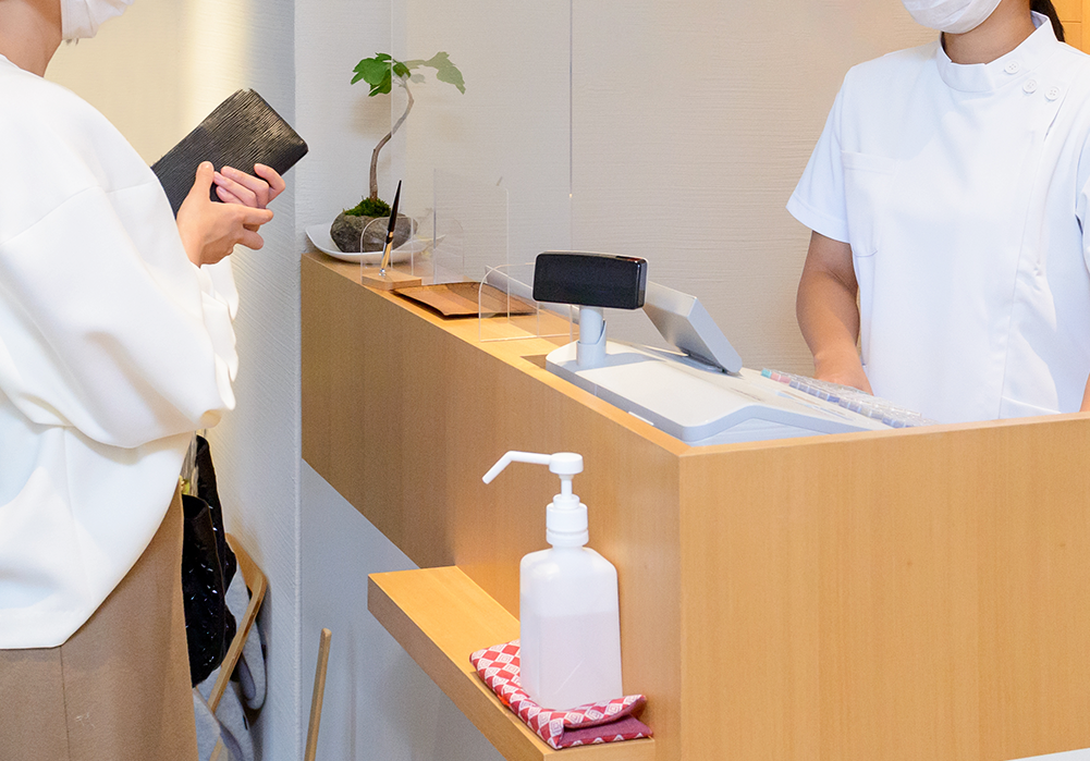 次回のご予約についてお伺いし、お会計をいたします。お気をつけてお帰りください。